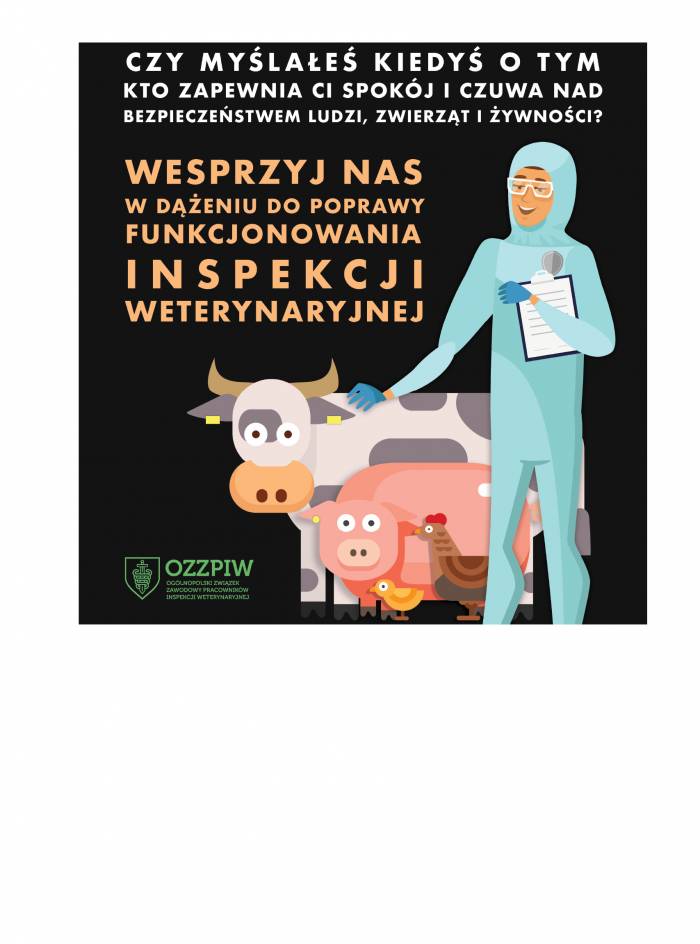 Dzisiaj zaostrzył się trwający od miesięcy protest pracowników Inspekcji Weterynaryjnej. Rano o g. 9 pracownicy Powiatowego Inspektoratu Weterynarii w Kaliszu wraz z Zakładem Higieny Weterynaryjnej w Kaliszu w czarnych strojach i transparentem wyszli przed swoje miejsce pracy. Protest był ogólnopolski i zapowiadany. Decyzją Zarząd Ogólnopolskiego Związku Zawodowego Pracowników Inspekcji Weterynaryjnej dzisiejszy protest stanowi dopiero początek większej serii.