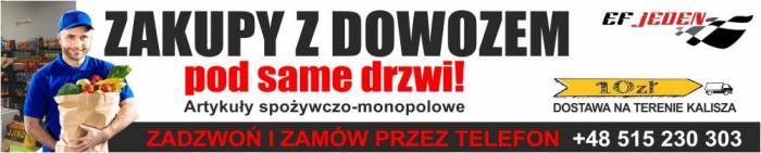 Zwiększa się zainteresowanie mieszkańców Kalisza zakupami na dowóz. Produkty można zamawiać telefonicznie lub za pośrednictwem strony internetowej www.f1kalisz.pl, z opcją wskazania preferowanej godziny dostawy. Artykuły dostarczane są ekspresowo. Na terenie Kalisza dostawa zamówionych produktów kosztuje tylko 10 zł.