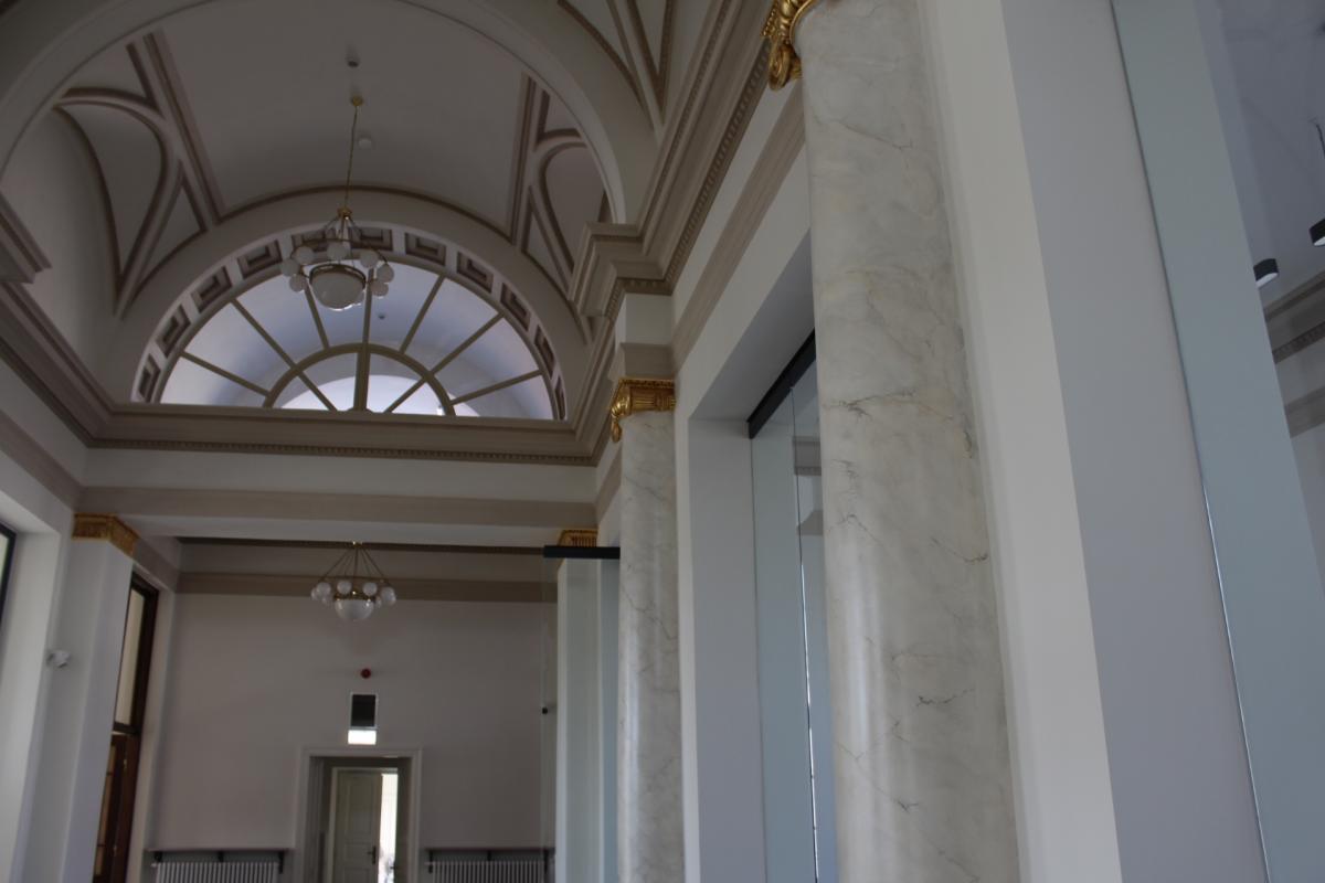 Galeria zdjęć prezentująca proces modernizacji gmachu, który przez osiem dekad służył bankowości, a teraz stał się siedzibą Rektoratu Uniwersytetu Kaliskiego. Zdjęcia dokumentują prace remontowe, odnowioną elewację, wnętrza i sale wykładowe. Efektowna restauracja zabytkowych detali budynku, odnowione gzymsy i dekoracje. Zaprezentowane są także przygotowania do uroczystego otwarcia obiektu oraz Drzwi Otwarte dla mieszkańców, zachęcając do zwiedzania i doceniania efektów pracy.