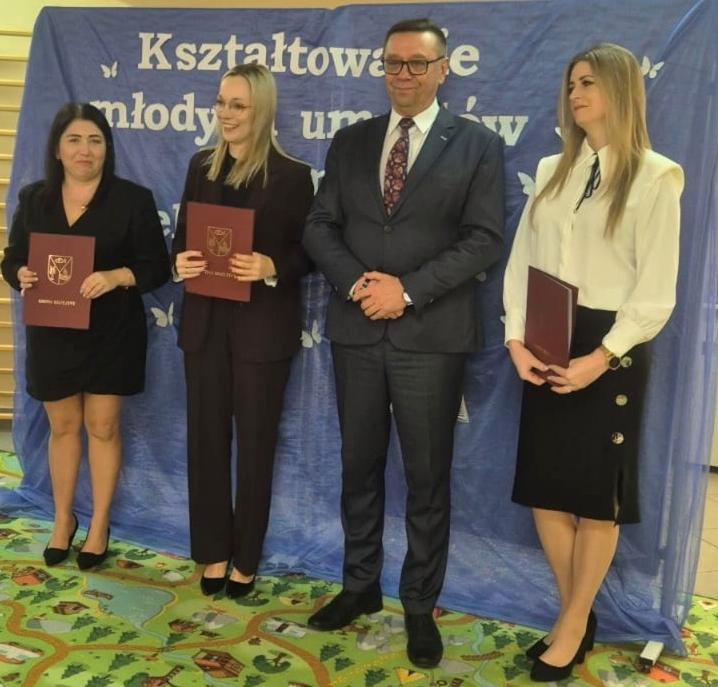 Na uroczystości w gminie Brzeziny wójt Marek Cieślarczyk wyraził wdzięczność nauczycielom i pracownikom oświaty za ich trud i poświęcenie w codziennej pracy z młodymi. Ponadto wyróżnił dyrektorów i nauczycieli za ich osiągnięcia - nagrody otrzymali m.in. Anna Jankowska i Elżbieta Plewińska. Wójt także awansował nauczycieli mianowanych, w tym Agatę Szmaję i Klaudię Salamon. Na zdjęciach zobaczysz atmosferę tego wzruszającego wydarzenia.