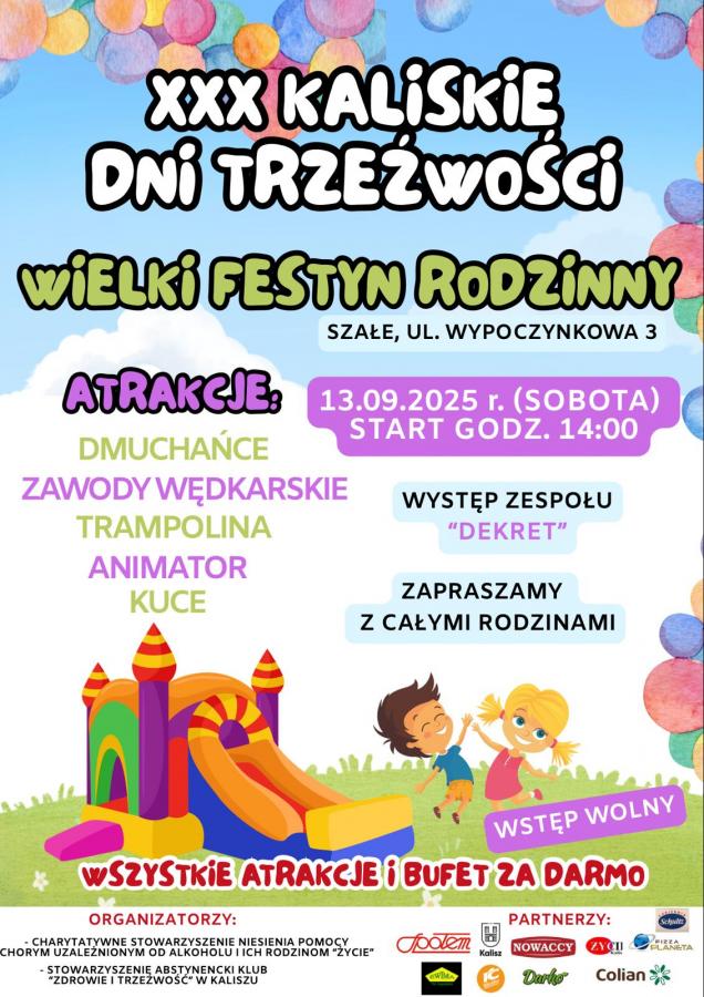 Zapraszamy na fotorelację z Pikniku Rodzinnego, który odbył się podczas XXX Kaliskich Dni Trzeźwości. Dzieci szalały na dmuchawcach, bawiły się z animatorem, skakały na trampolinie, a nawet przejechały się kucem. Dorośli mogli spróbować swoich sił w wędkowaniu, posłuchać koncertu zespołu Dekret i delektować się smakowitą kuchnią, która była serwowana za darmo. Piknik był organizowany przez kaliskie organizacje: Stowarzyszenie Życie oraz Stowarzyszenie Abstynencki Klub Zdrowie i Trzeźwość. Serdecznie zapraszamy do wspólnej zabawy!