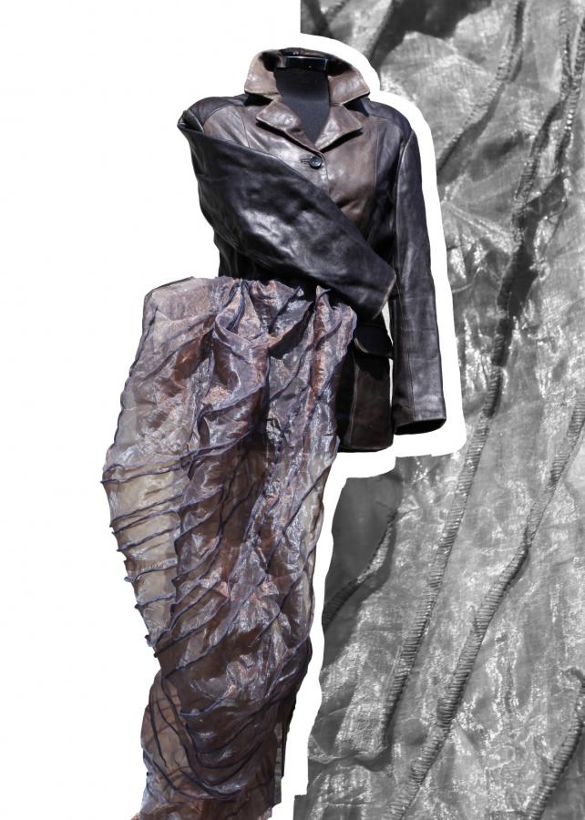 Profesor Monika Kostrzewa prezentuje formy ubiorów charakteryzujące się diagonalną kompozycją i spiralną konstrukcją, symbolizującą cyrkularność mody. Kolekcja zawiera także autorskie grafiki i zdjęcia ideowe, redefiniujące wartość struktury materii. Prowadząca unikatową pracownię sztuk projektowych na UAM w Kaliszu, prof. Kostrzewa angażuje się w mody zrównoważoną, kreując formy w nurcie slow fashion i zero waste.