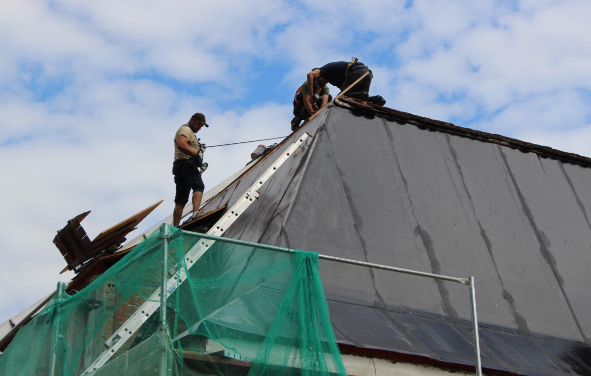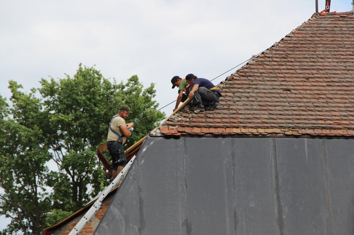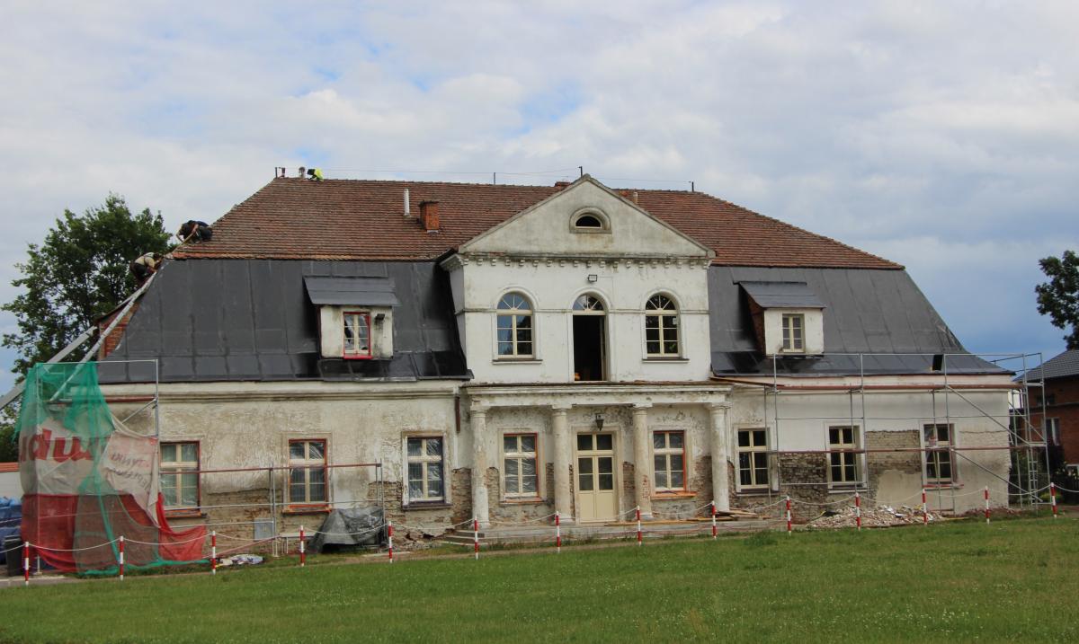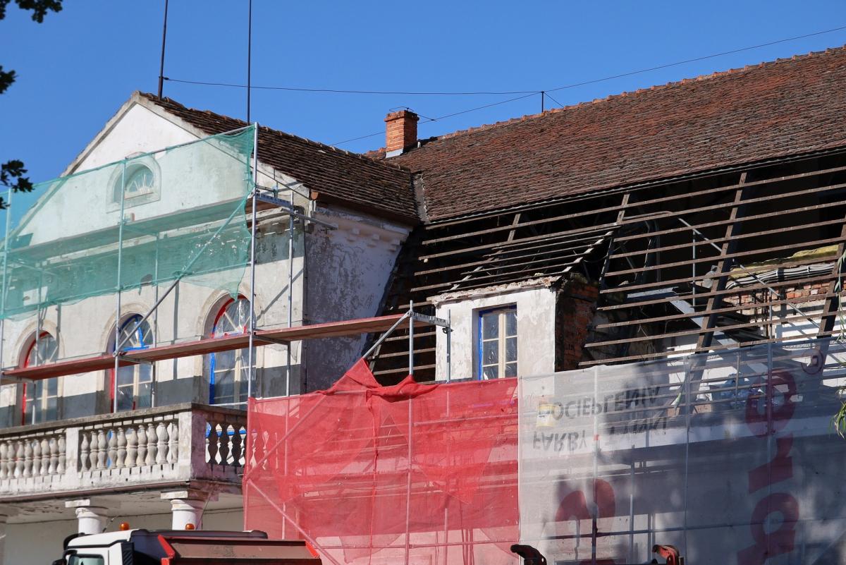 Dzięki dofinansowaniu z Ministerstwa Kultury i Dziedzictwa Narodowego projekt odnowienia zabytkowego budynku Urzędu Gminy stał się rzeczywistością. Obecnie trwają prace związane z wymianą pokrycia dachowego, obejmujące m.in. demontaż starej dachówki, ocieplenie dachu, położenie nowego pokrycia, opracowanie opierzenia i orynnowania oraz prace tynkarskie przy kominach. Zdjęcia autorstwa UG Żelazków dokumentują postępy remontu.