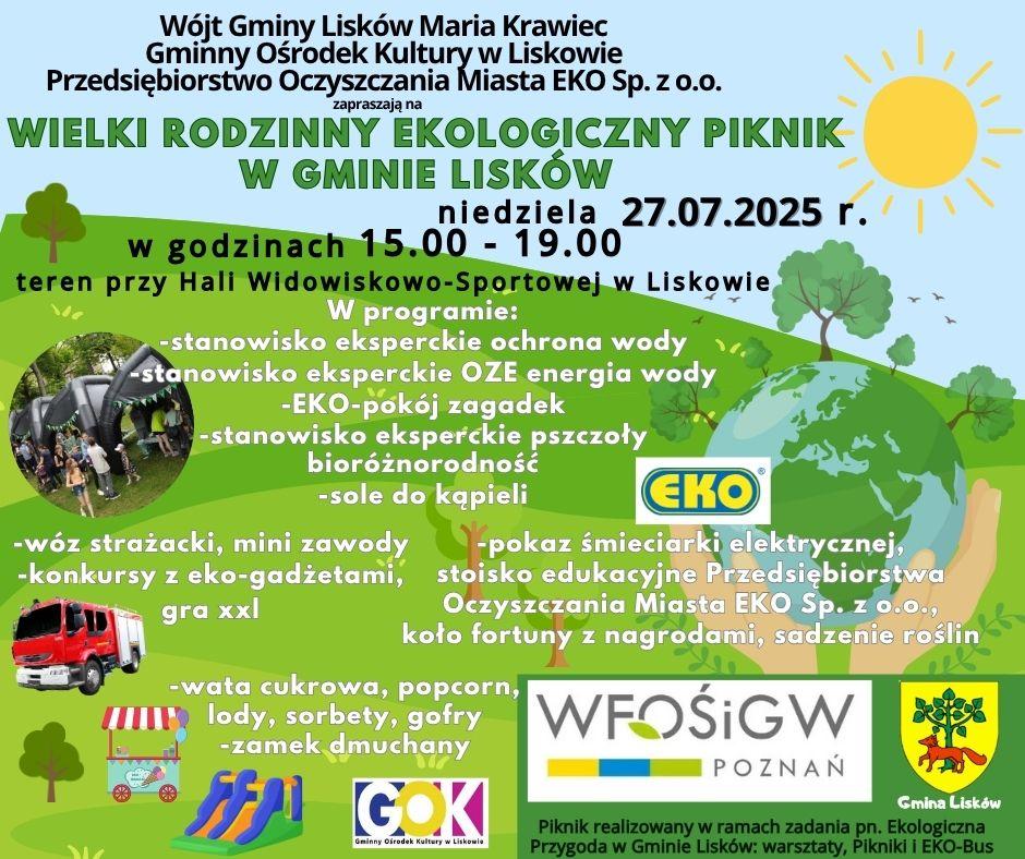Zapraszamy do galerii zdjęć z wydarzenia z udziałem Marii Krawiec, wójta gminy Lisków, Gminnego Ośrodka Kultury w Liskowie i Przedsiębiorstwa Oczyszczania Miasta EKO Sp. z o.o. Zobacz, jak dzieci bawiły się na sektorze zabawowym, a dorośli zgłębiali wiedzę o odnawialnych źródłach energii. Zdjęcia pełne radości, gier, konkursów i przysmaków kulinarnej natury. Czekają na Ciebie w naszej galerii!